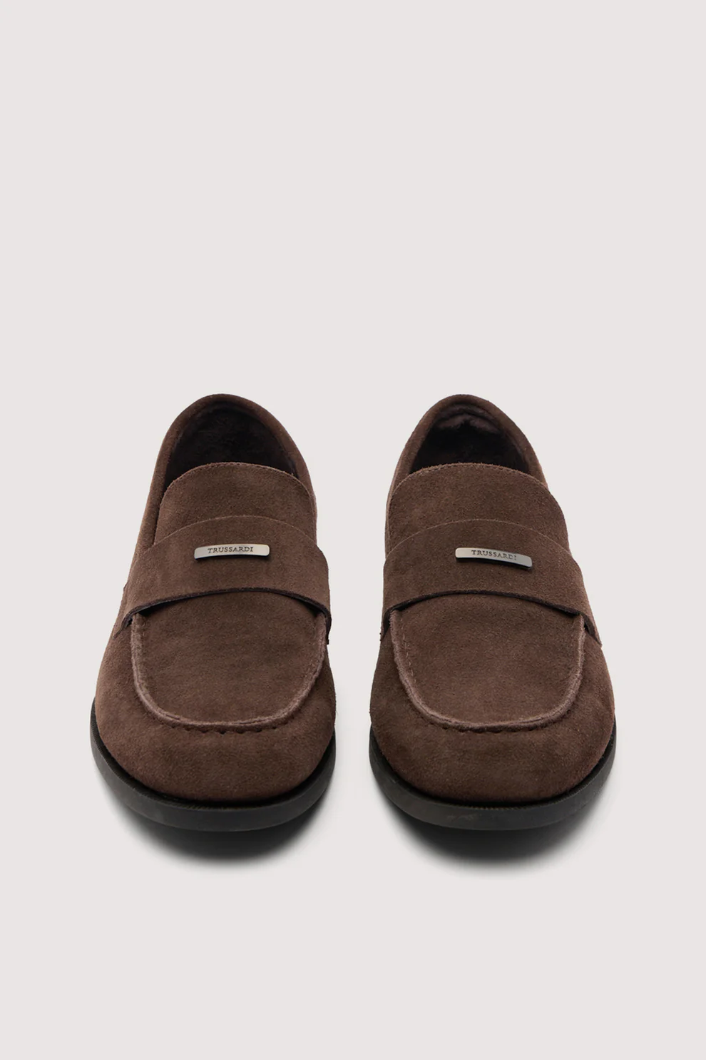 Mocassim de camurça com tira frontal, forro e sola de couro, fabricado inteiramente na Itália.